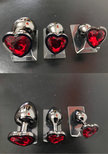 Zestaw 3 korków czerwony - Elegancki komplet korków analnych z kryształkiem w kształcie serca. Wykonany z wysokiej jakości stali nierdzewnej, zapewnia komfort i bezpieczeństwo użytkowania, szybko dostosowując się do temperatury ciała. Zestaw zawiera trzy rozmiary (S, M, L), co pozwala na dopasowanie produktu do poziomu doświadczenia i osobistych preferencji. Doskonały do gry wstępnej, eksploracji BDSM i codziennego noszenia, oferuje zmysłową stymulację oraz dodatkowy element elegancji. Dyskretny i gustowny, to również świetny wybór na prezent.