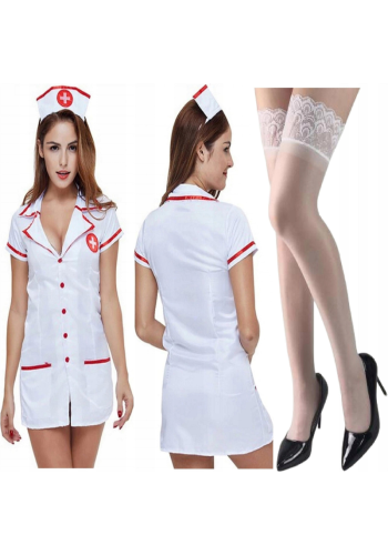 Zanurz się w kuszącej roli dzięki naszemu przebraniu Pielęgniarki STELLA. Ten kompletny zestaw zawiera wszystko, czego potrzebujesz, aby rozpalić zmysły. W skład zestawu wchodzi koszula pielęgniarki zmysłowo dopasowana do ciała, elegancka opaska na głowę, seksowne stringi oraz pończochy dodające pikanterii całej stylizacji.