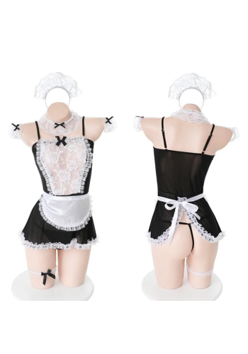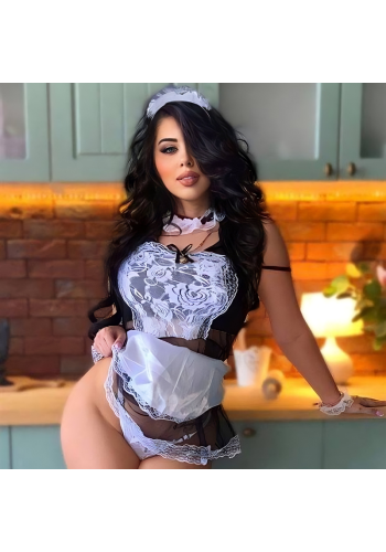 Nasze seksowne przebranie niegrzecznej pokojówki SELENE to gwarancja niezapomnianych chwil z partnerem. Składa się z czarnej sukienki z fartuszkiem ozdobioną białą koronką, opaski na głowę, białej koronkowej podwiązki (może pełnić rolę chokera), dwóch opasek na ręce oraz stringów. Każdy detal jest dopracowany, zapewniając kuszący wygląd i pełen komfort.
