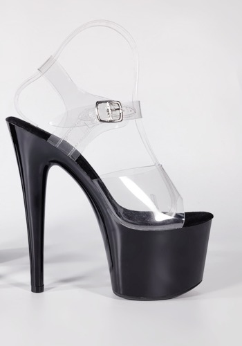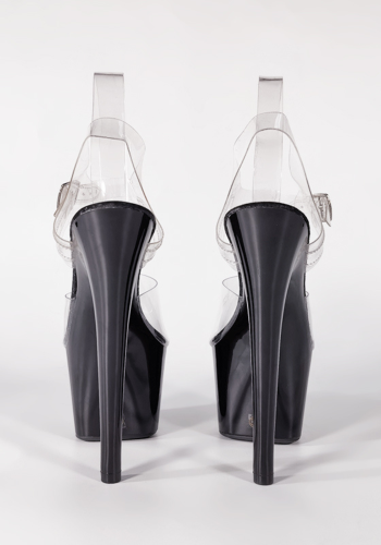 Przezroczyste sandały na platformie z czarną podstawą, wysokie szpilki do pole dance i exotic dance SexyHeels
