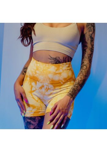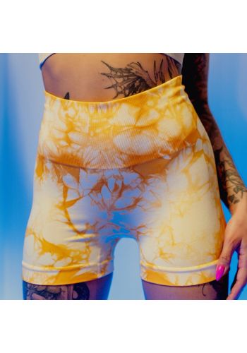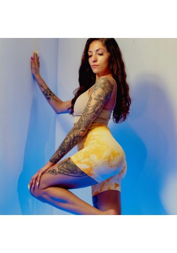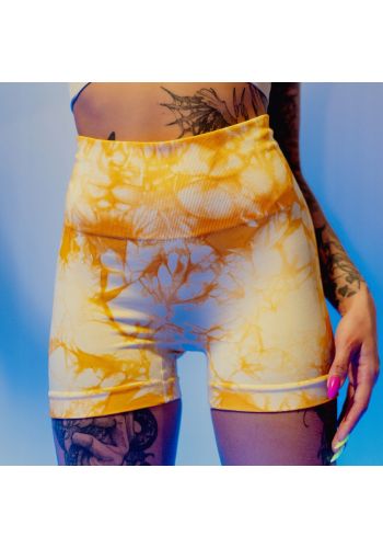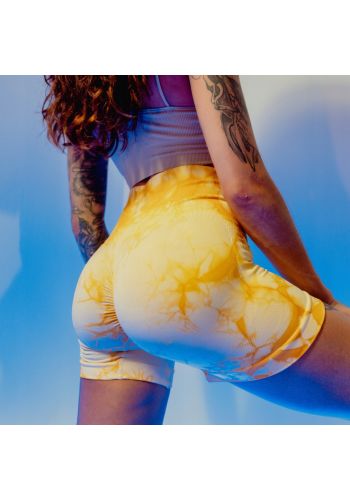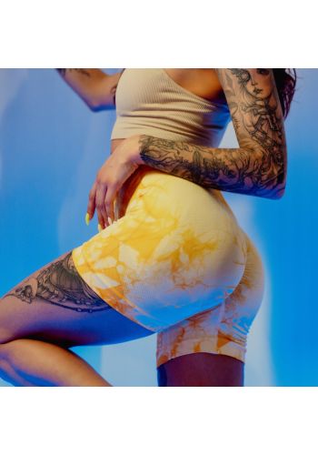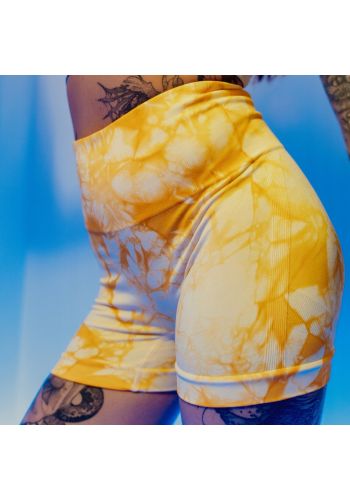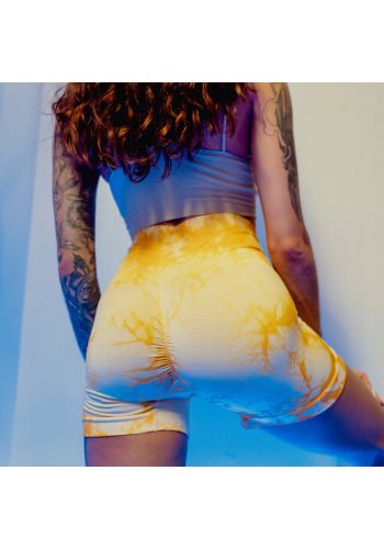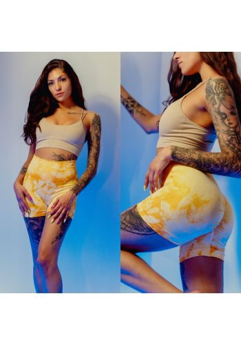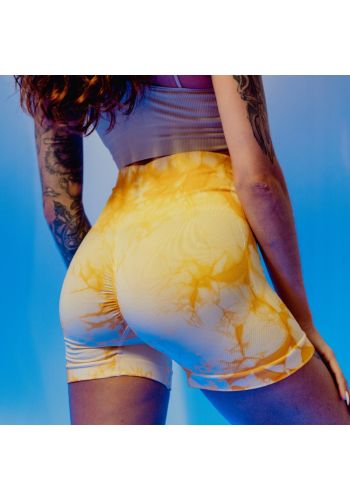 Spodenki Damskie PUSH UP LEGGINSY ŻÓŁTE WYSOKI STAN SEXY Kolarki Tie Dye