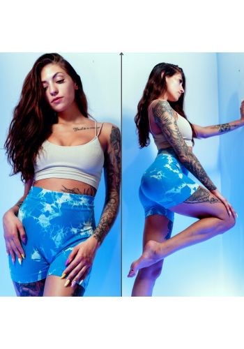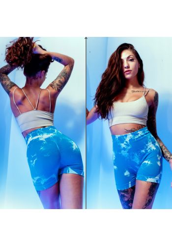 Spodenki Damskie PUSH UP LEGGINSY Niebieskie WYSOKI STAN Kolarki Tie Dye