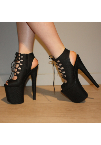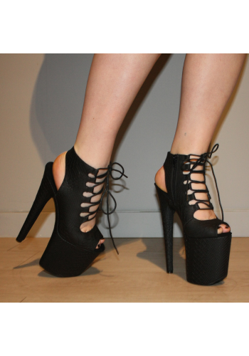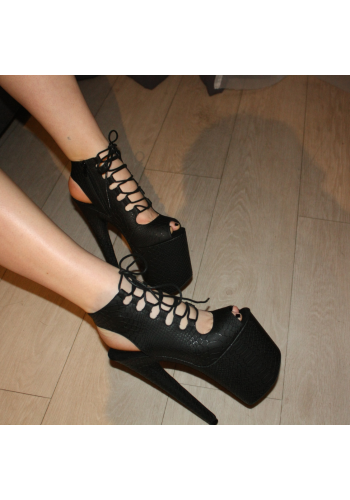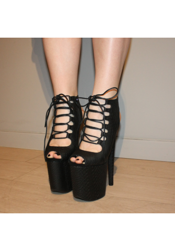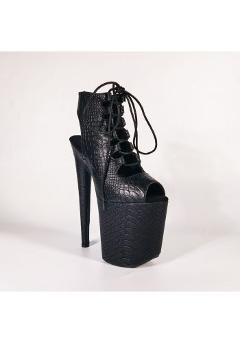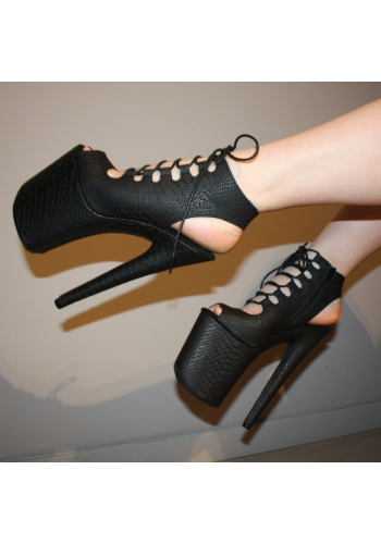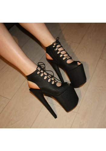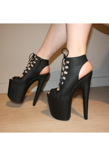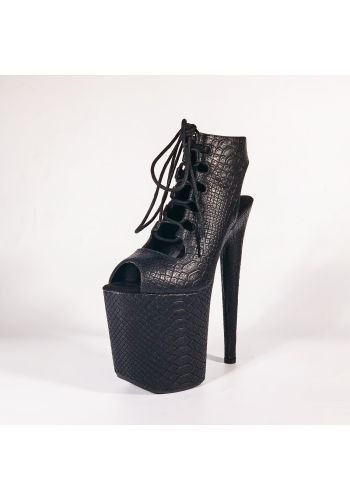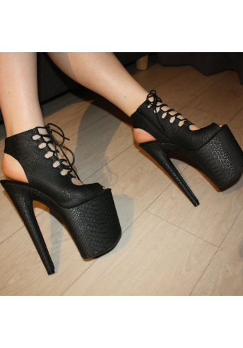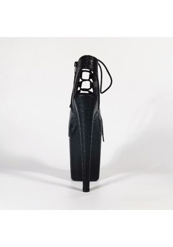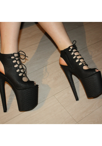 Czarne botki EXOTIC-1020 na platformie 20 cm, szpilki do pole dance i tańca exotic, skóra wężowa