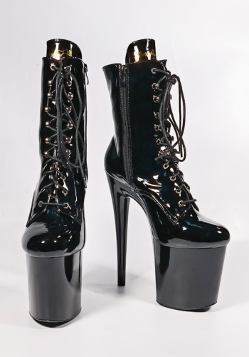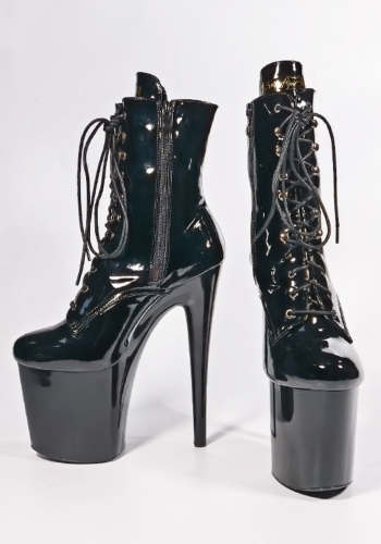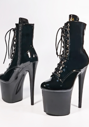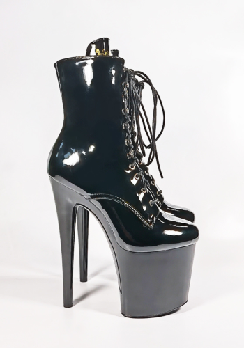 Seksowne Czarne botki Passion-1020. Wykonane z lakierowanej eko skóry, zapewniają zniewalający połysk. Obcasy 20 cm i 10 cm platformy nadają im elegancki i zmysłowy wygląd. Sznurowane dla idealnego dopasowania, gwarantują stabilność i bezpieczeństwo. To idealny wybór do tańca Pole-Dance i intymnych chwil. Ciesz się luksusem z naszymi botkami!