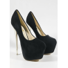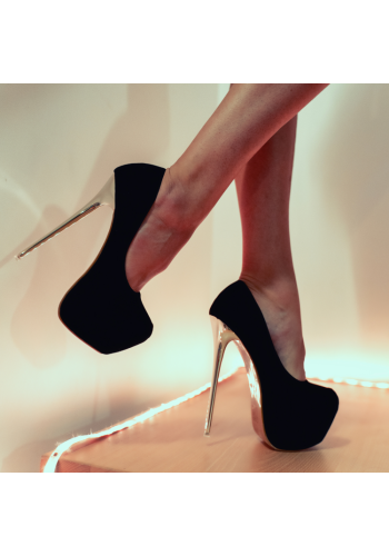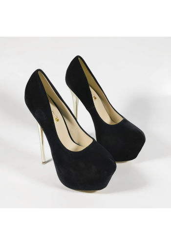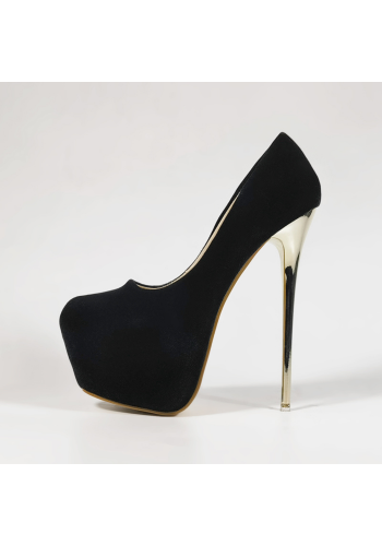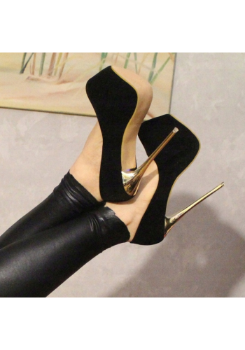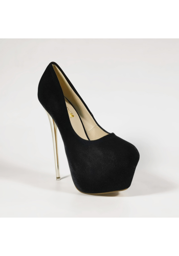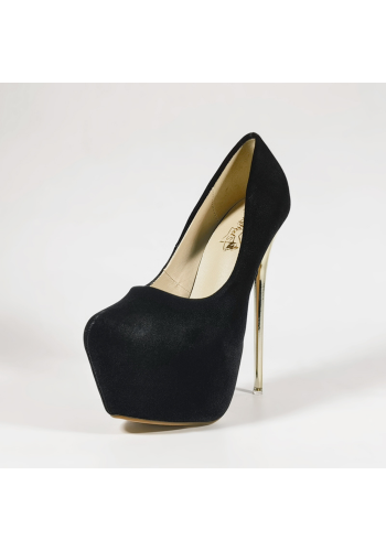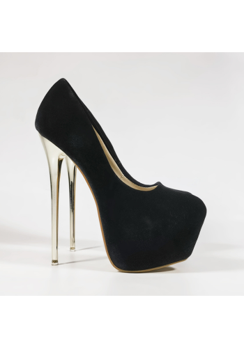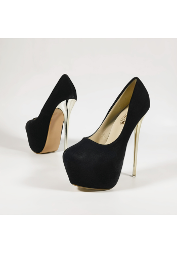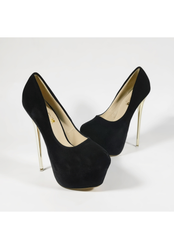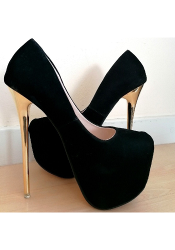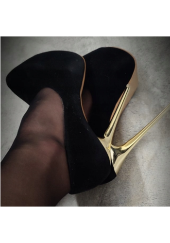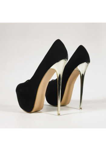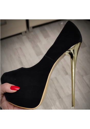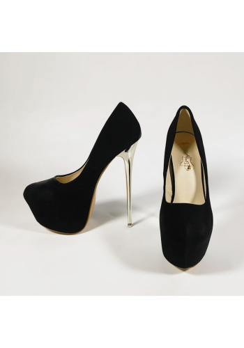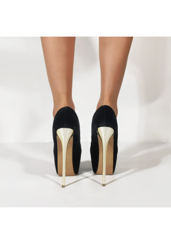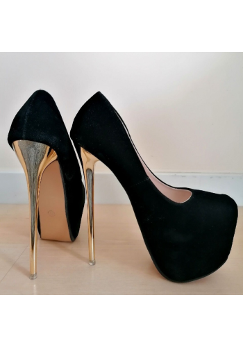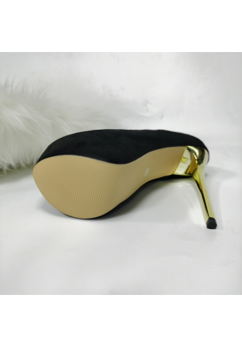 Botki Euforia-1017 Czarne Szpilki Zamszowe SexyHeels Ze Złotą Szpilką Na Platformie 17 cm