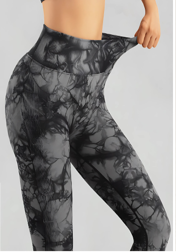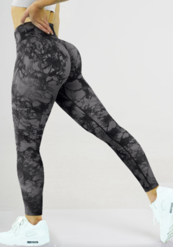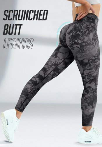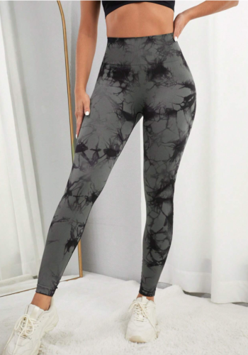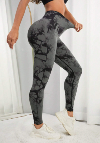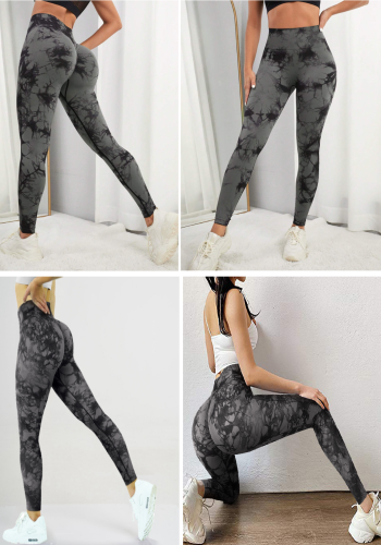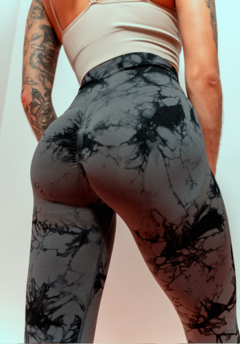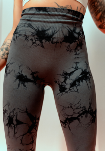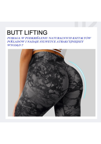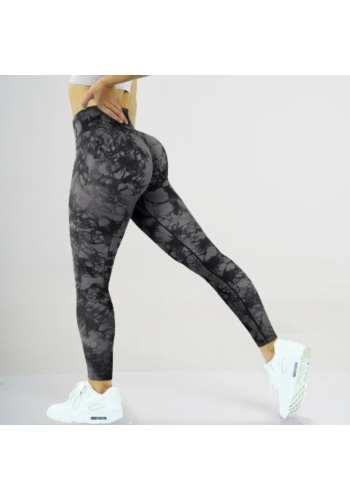 Legginsy Damskie Push Up Szare Seksowne Leginsy Sportowe Tie-Dye