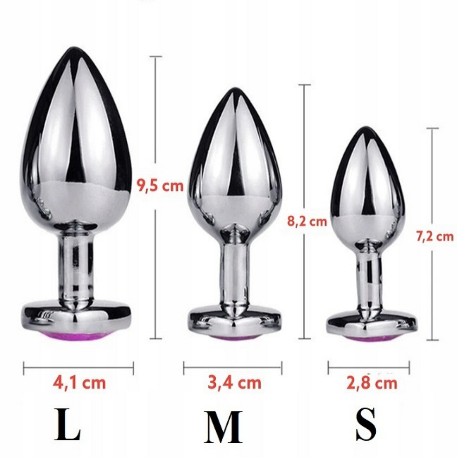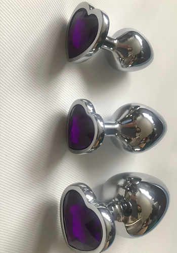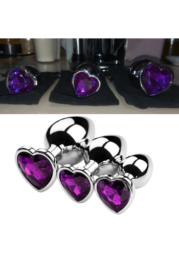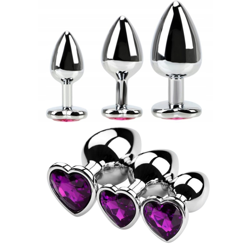 Zestaw 3 korków fioletowy - Elegancki komplet korków analnych z kryształkiem w kształcie serca. Wykonany z wysokiej jakości stali nierdzewnej, zapewnia komfort i bezpieczeństwo użytkowania, szybko dostosowując się do temperatury ciała. Zestaw zawiera trzy rozmiary (S, M, L), co pozwala na dopasowanie produktu do poziomu doświadczenia i osobistych preferencji. Doskonały do gry wstępnej, eksploracji BDSM i codziennego noszenia, oferuje zmysłową stymulację oraz dodatkowy element elegancji. Dyskretny i gustowny, to również świetny wybór na prezent.