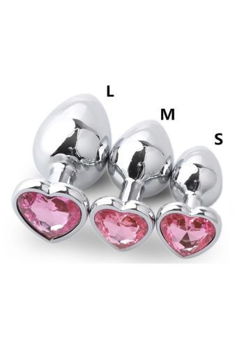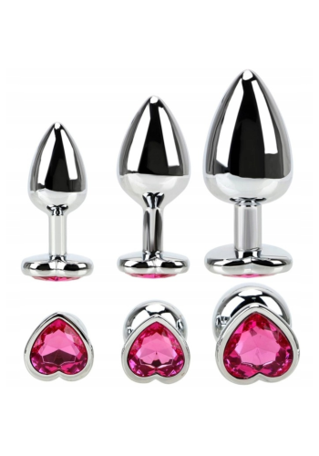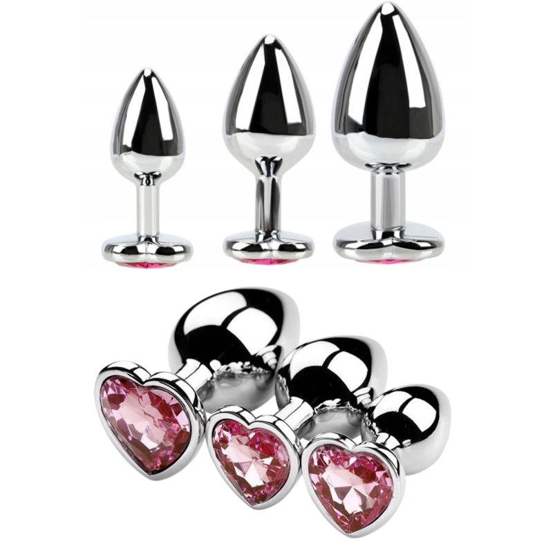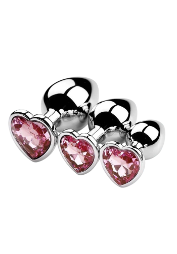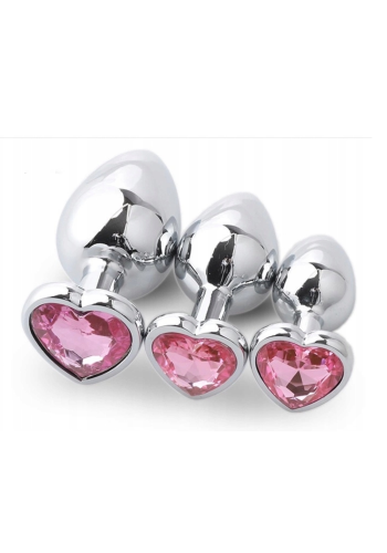 Zestaw 3 korków różowy - Elegancki komplet korków analnych z kryształkiem w kształcie serca. Wykonany z wysokiej jakości stali nierdzewnej, zapewnia komfort i bezpieczeństwo użytkowania, szybko dostosowując się do temperatury ciała. Zestaw zawiera trzy rozmiary (S, M, L), co pozwala na dopasowanie produktu do poziomu doświadczenia i osobistych preferencji. Doskonały do gry wstępnej, eksploracji BDSM i codziennego noszenia, oferuje zmysłową stymulację oraz dodatkowy element elegancji. Dyskretny i gustowny, to również świetny wybór na prezent.
