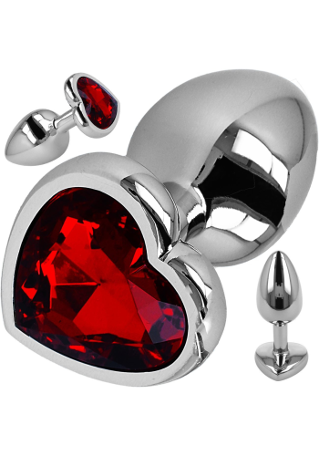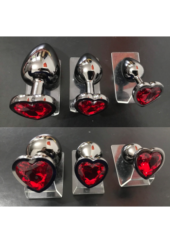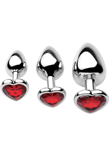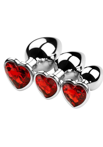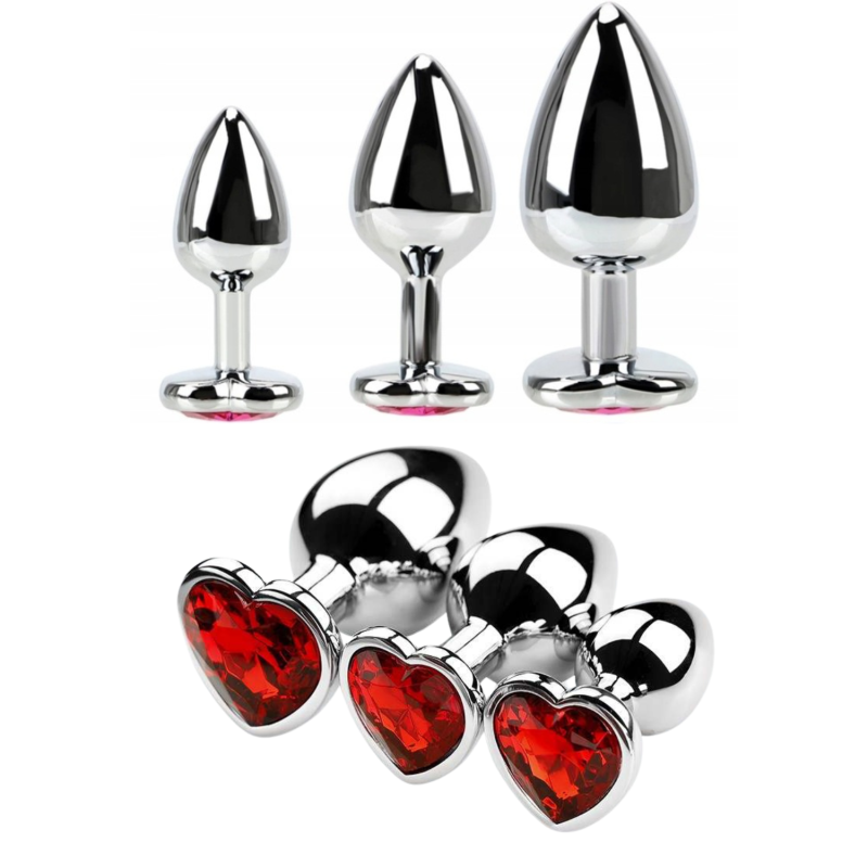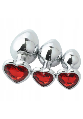 Zestaw 3 korków czerwony - Elegancki komplet korków analnych z kryształkiem w kształcie serca. Wykonany z wysokiej jakości stali nierdzewnej, zapewnia komfort i bezpieczeństwo użytkowania, szybko dostosowując się do temperatury ciała. Zestaw zawiera trzy rozmiary (S, M, L), co pozwala na dopasowanie produktu do poziomu doświadczenia i osobistych preferencji. Doskonały do gry wstępnej, eksploracji BDSM i codziennego noszenia, oferuje zmysłową stymulację oraz dodatkowy element elegancji. Dyskretny i gustowny, to również świetny wybór na prezent.