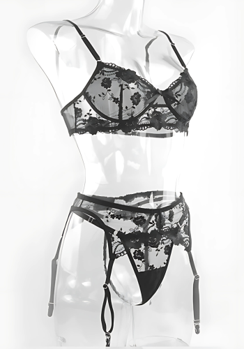 Trzyczęściowy Komplet Koronkowy ROSE - Intymność Na Nowym Poziomie