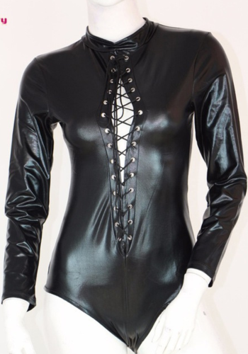 ❤️‍Seksowny Kombinezon mini – obcisły, podkreślający sylwetkę, idealny dla odważnych kobiet na intymne zabawy. Wykonany z syntetycznej skóry, z wiązanym dekoltem i długimi rękawami, dodaje pewności siebie i zmysłowości.❤️‍