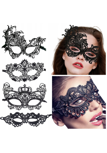 ❤️ZESTAW 4 MASEK - Uwodzicielska maska z czarnej koronki to idealny wybór na karnawał, wieczór panieński lub romantyczne spotkanie. Asymetryczny wzór eksponuje oczy, dodając spojrzeniu zmysłowości. W zestawie są aż 4 różne modele, każdy wykonany z delikatnej koronki, by dodać Twojej stylizacji elegancji i tajemniczości. Zamów i uzupełnij swoją kolekcję o wyjątkowy akcent!❤️