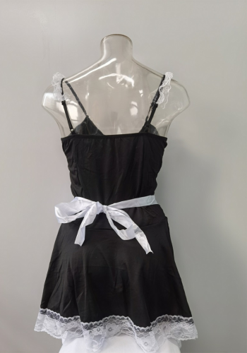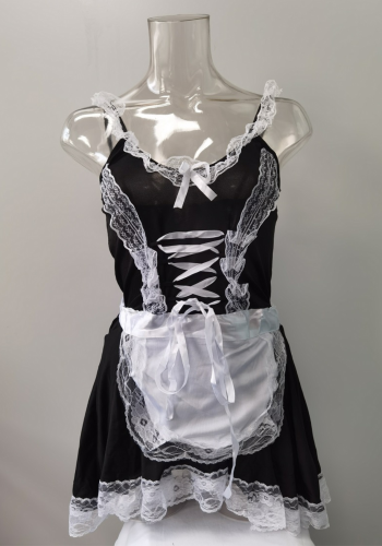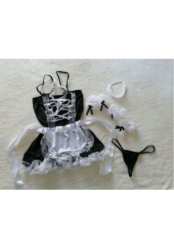 Nasze seksowne przebranie niegrzecznej pokojówki NIKA to gwarancja niezapomnianych chwil z partnerem. Składa się z czarnej sukienki z fartuszkiem ozdobioną białą koronką, opaski na głowę, białej koronkowej podwiązki (może pełnić rolę chokera), dwóch opasek na ręce oraz stringów. Każdy detal jest dopracowany, zapewniając kuszący wygląd i pełen komfort.
