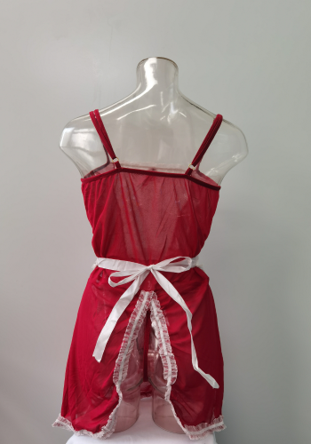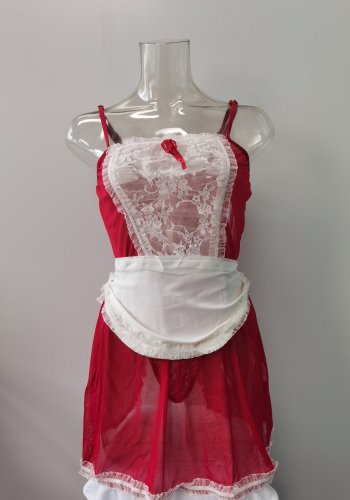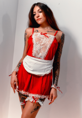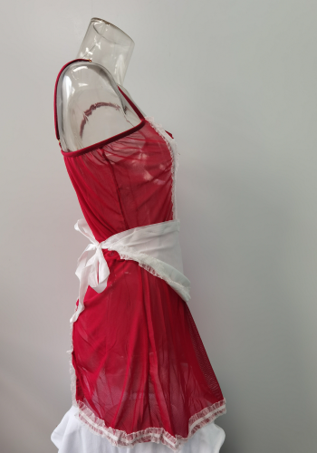 Nasze seksowne przebranie niegrzecznej pokojówki KISSA to gwarancja niezapomnianych chwil z partnerem. Składa się z CZERWONEJ sukienki z fartuszkiem ozdobioną białą koronką, opaski na głowę, białej koronkowej podwiązki (może pełnić rolę chokera), dwóch opasek na ręce oraz stringów. Każdy detal jest dopracowany, zapewniając kuszący wygląd i pełen komfort.
