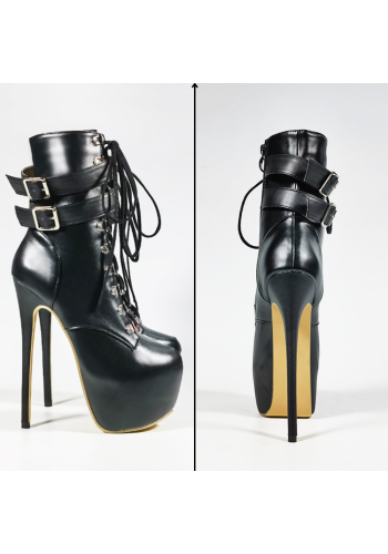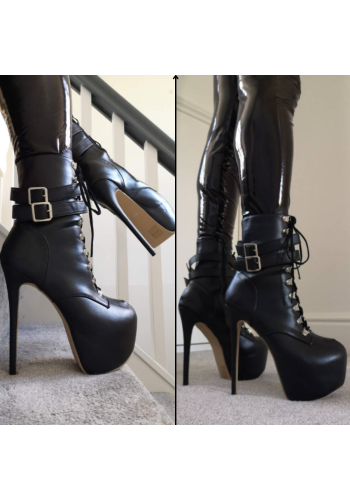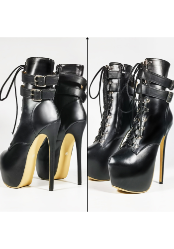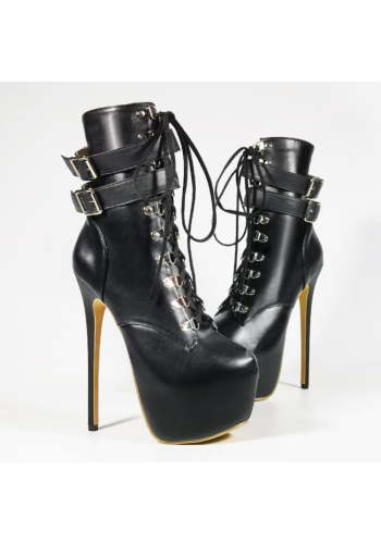 Botki na wysokiej szpilce 16 cm Divinia SexyHeels, czarne buty z klamrami i sznurowaniem