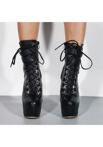 Czarne botki Divinia SexyHeels na platformie 16 cm, wysokie szpilki z paskami i wiązaniem, buty fetish dla kobiet