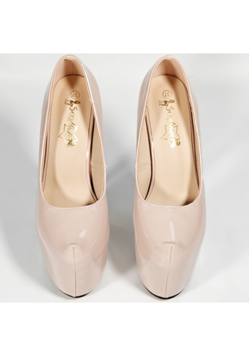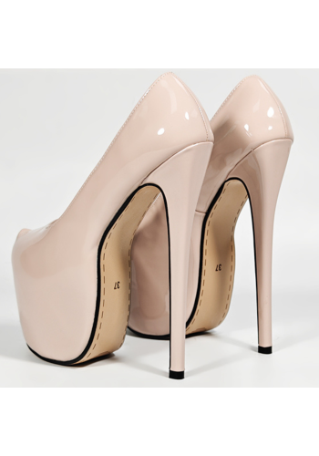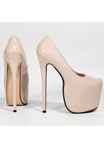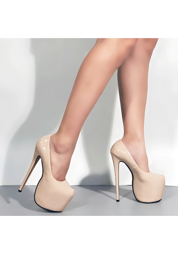 Lakierowane beżowe szpilki na platformie ADORAY-1018, wysokie obcasy 18 cm, buty erotyczne SexyHeels nude