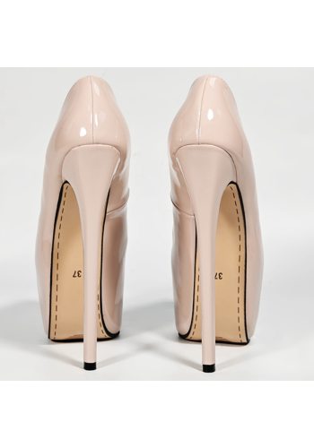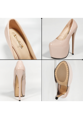 Beżowe lakierowane szpilki ADORAY-1018 na platformie 18 cm, eleganckie buty erotyczne SexyHeels dla kobiet